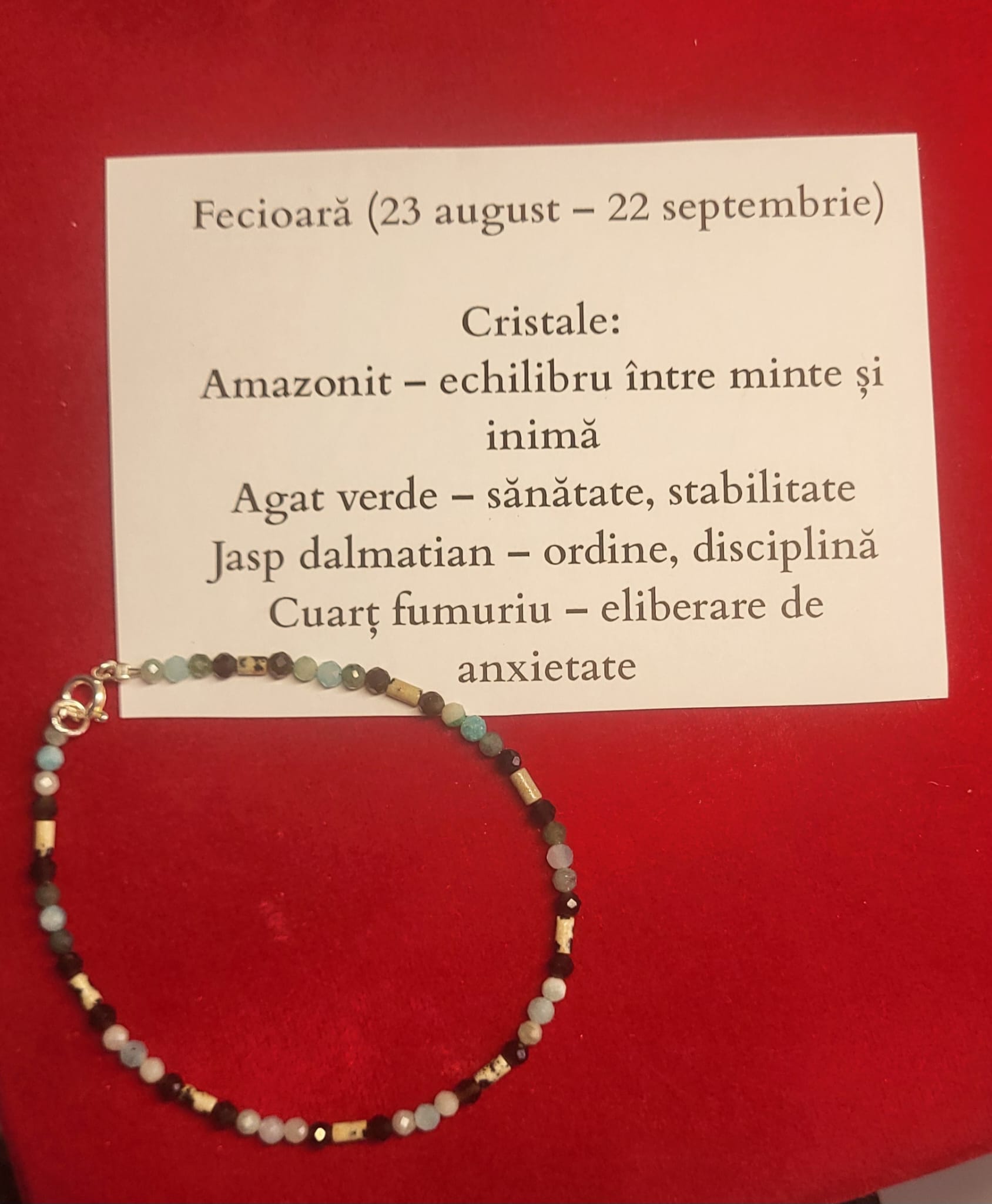 Agat verde – sănătate, stabilitate Jasp dalmatian – ordine, disciplină Cuarţ fumuriu – eliberare de anxietate